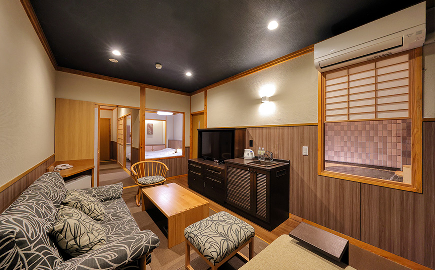 内風呂付の和洋室陶器の肌触りとぬくもりを肌で感じながら、心安らぐひとときを。
